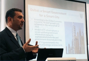 Representing MBRSG at the conference, Dr. Bassem Younis, Director of Strategic Alliances and Dr. Ahmed Badran, Assistant Professor of Public Policy gave a presentation based on a research paper prepared in cooperation with Dr. Ali Sebaa Al Marri, Executive President of MBRSG. The presentation gave an overview of the level of achievement and excellence Dubai and the UAE have reached in the field of public services provision and development through the implementation of information and communication technologies.